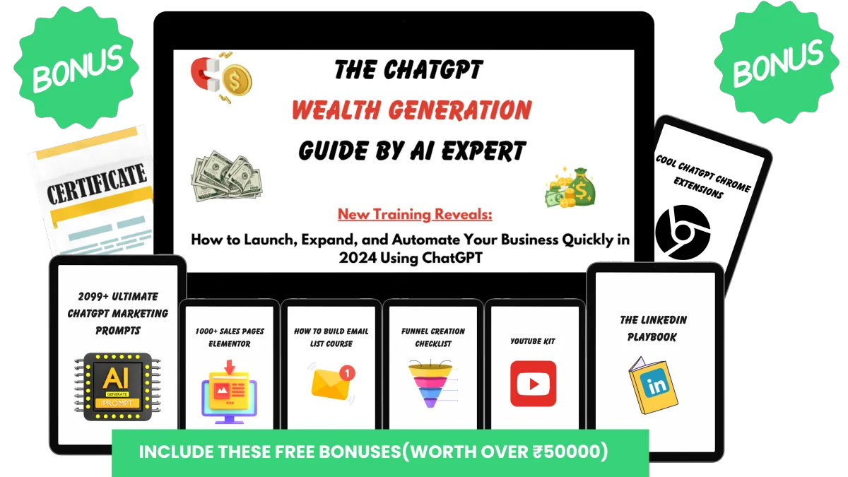 The ChatGPT Mastery Course - includes lot of comprehensive lessons, proven systems & strategies. Plus ₹50000 In Free bonus gifts, access to a like-minded community of entrepreneurs, marketers, and business owners to help you grow any business.